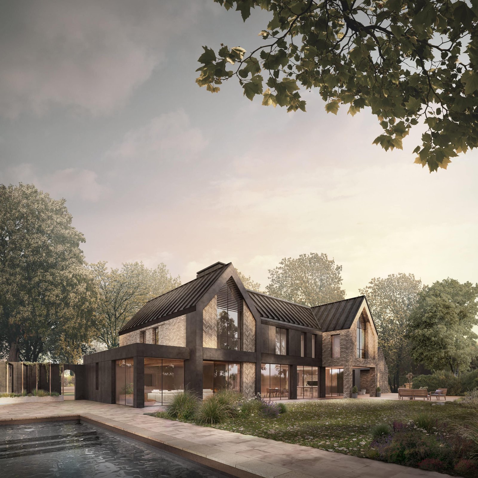- Use of linear bricks & standing seam zinc